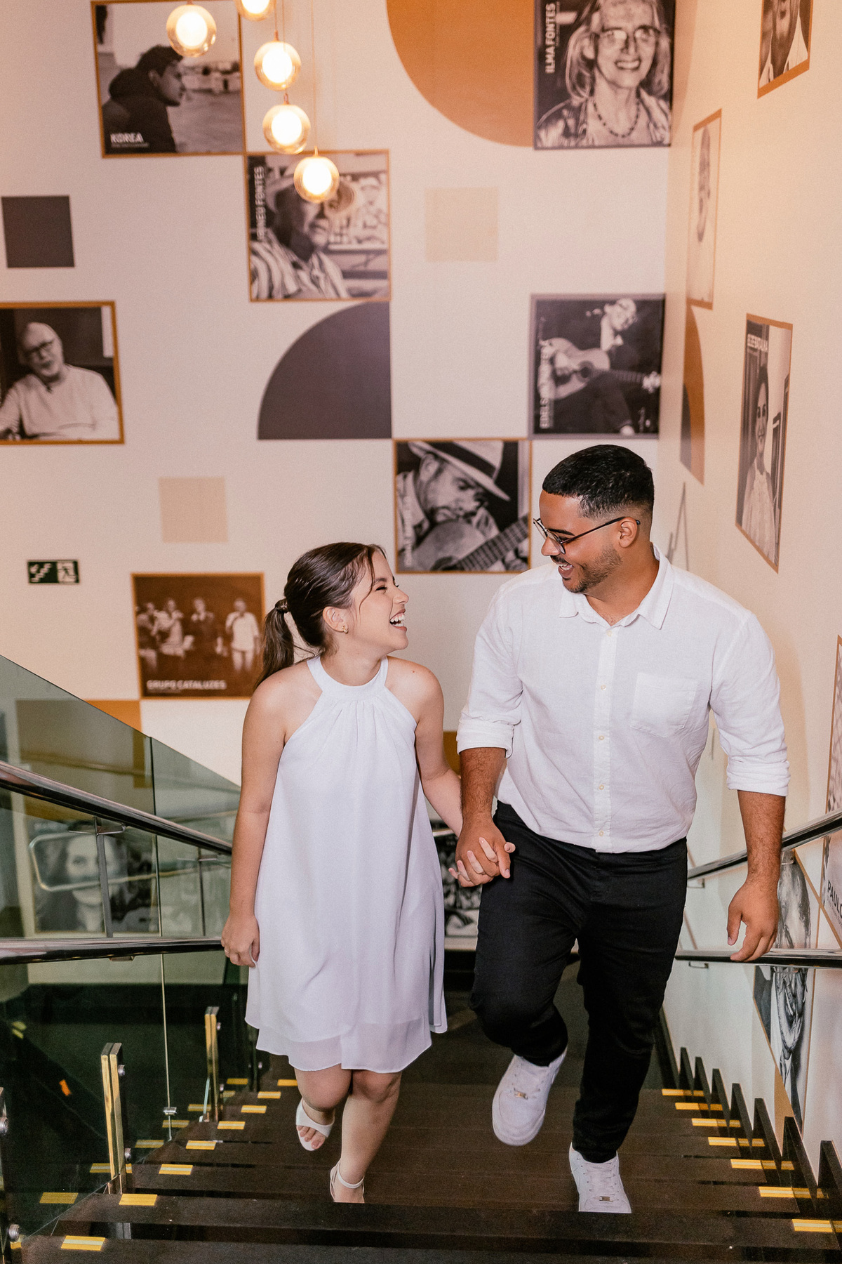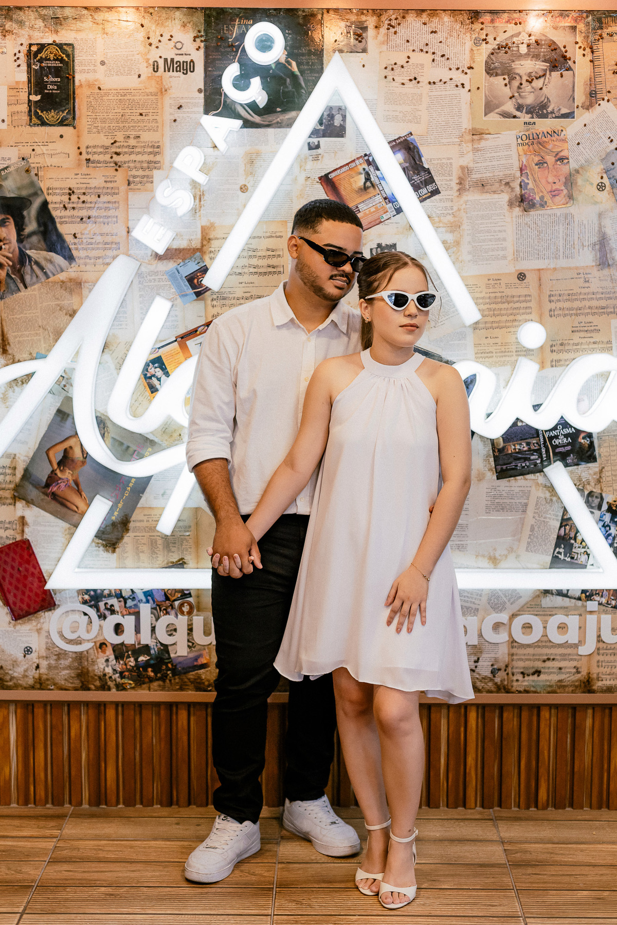 A Duda e o Júlio se viram pela primeira vez ainda bem pequenos, no transporte escolar. Anos depois, estudando na mesma escola e até na mesma sala, Deus os aproximou de verdade, e foi ali que começou a nascer algo maior. Durante o namoro, a Duda convidou o Júlio para ir com ela à igreja, e foi assim que ele também se entregou a Cristo. Esse passo não apenas fortaleceu o relacionamento, mas também construiu um alicerce sólido que guia a caminhada dos dois até hoje. Nós tivemos a alegria de recebê-los como alunos na nossa Escola de Noivos e acompanhamos de perto o quanto o relacionamento deles é firmado na fé, com Deus como alicerce.
